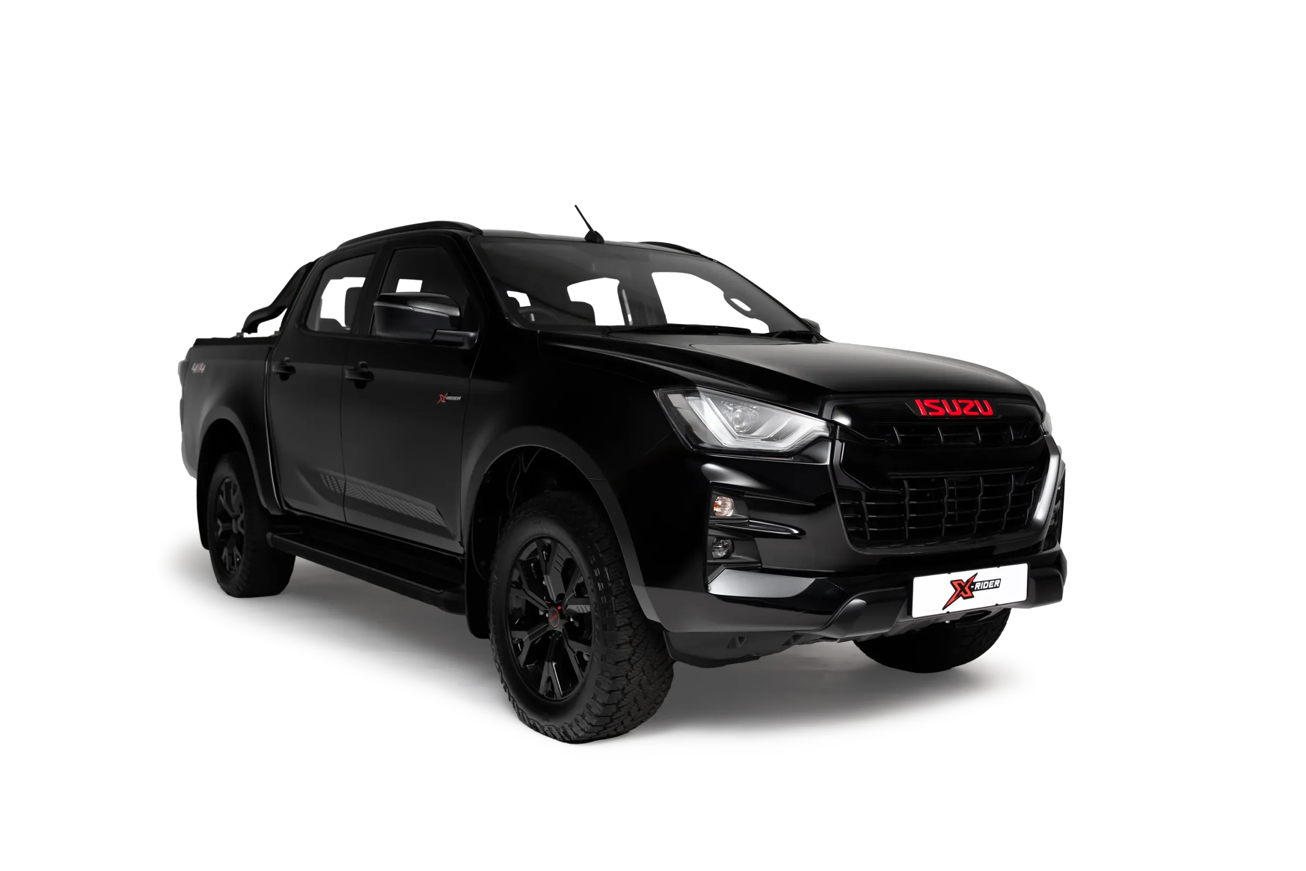 Make a stylish impression wherever you go with the new ISUZU X-RIDER, extra styling. The ISUZU X-RIDER comes standard with a gloss back radiator grille and a red ISUZU badge, X-RIDER decal on the side fenders and tailgate.